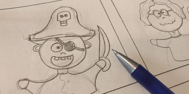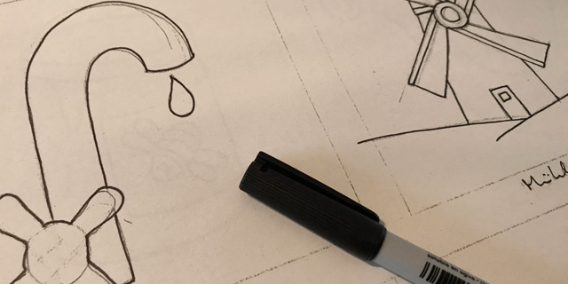 All Biller goufen als éischt mat der Hand gezeechent, mat engem Bleistift op enger Standard A4 Schabloun mat sechs 8x8 cm Quadrater.